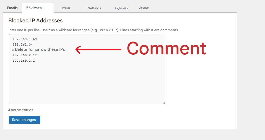 • You can use the wildcard * to block IP ranges: 192.168.0.*