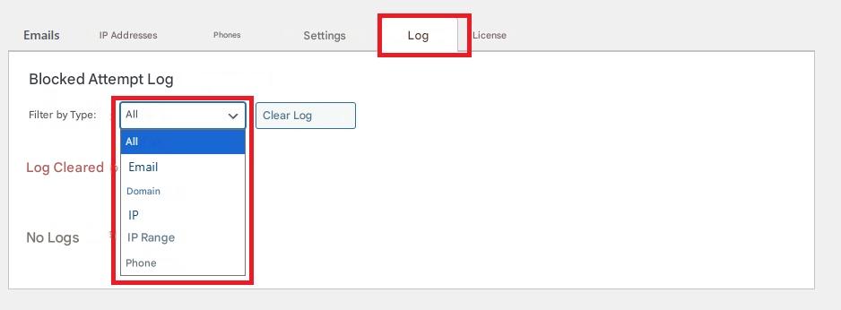 In this section, you can view the history of all blocked entries, including emails, IP addresses, and phone numbers.