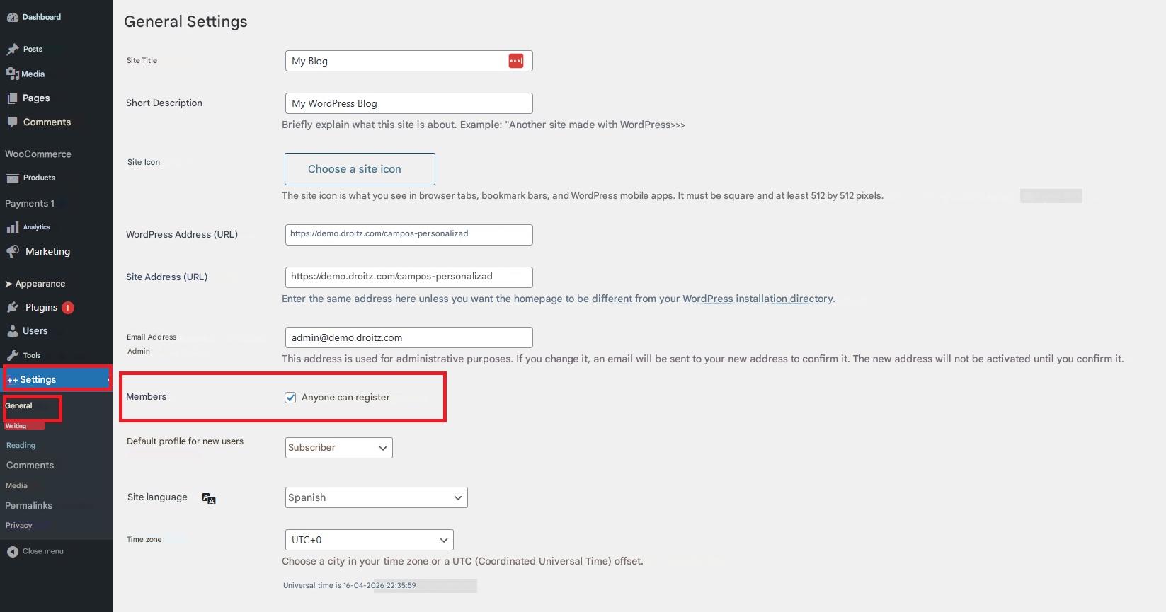 - Enable registration for anyone: Go to Settings > General, and in the Members section, enable the “Anyone can register” option. This will enable user registration on the site.