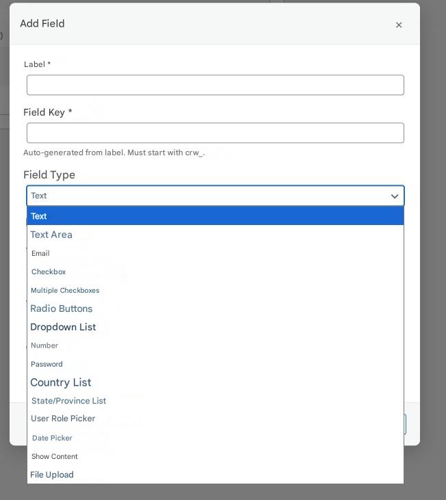 - Type: defines what type of data will be entered into the field (text, number, email, etc.).