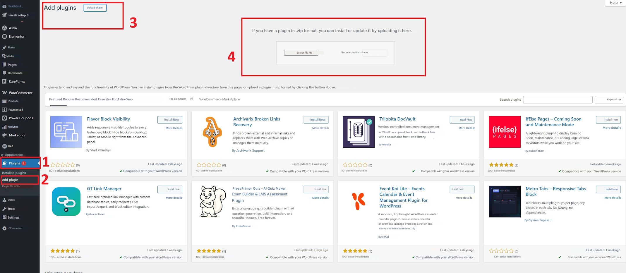 - In your WordPress dashboard, go to Plugins → Add New → Upload Plugin .