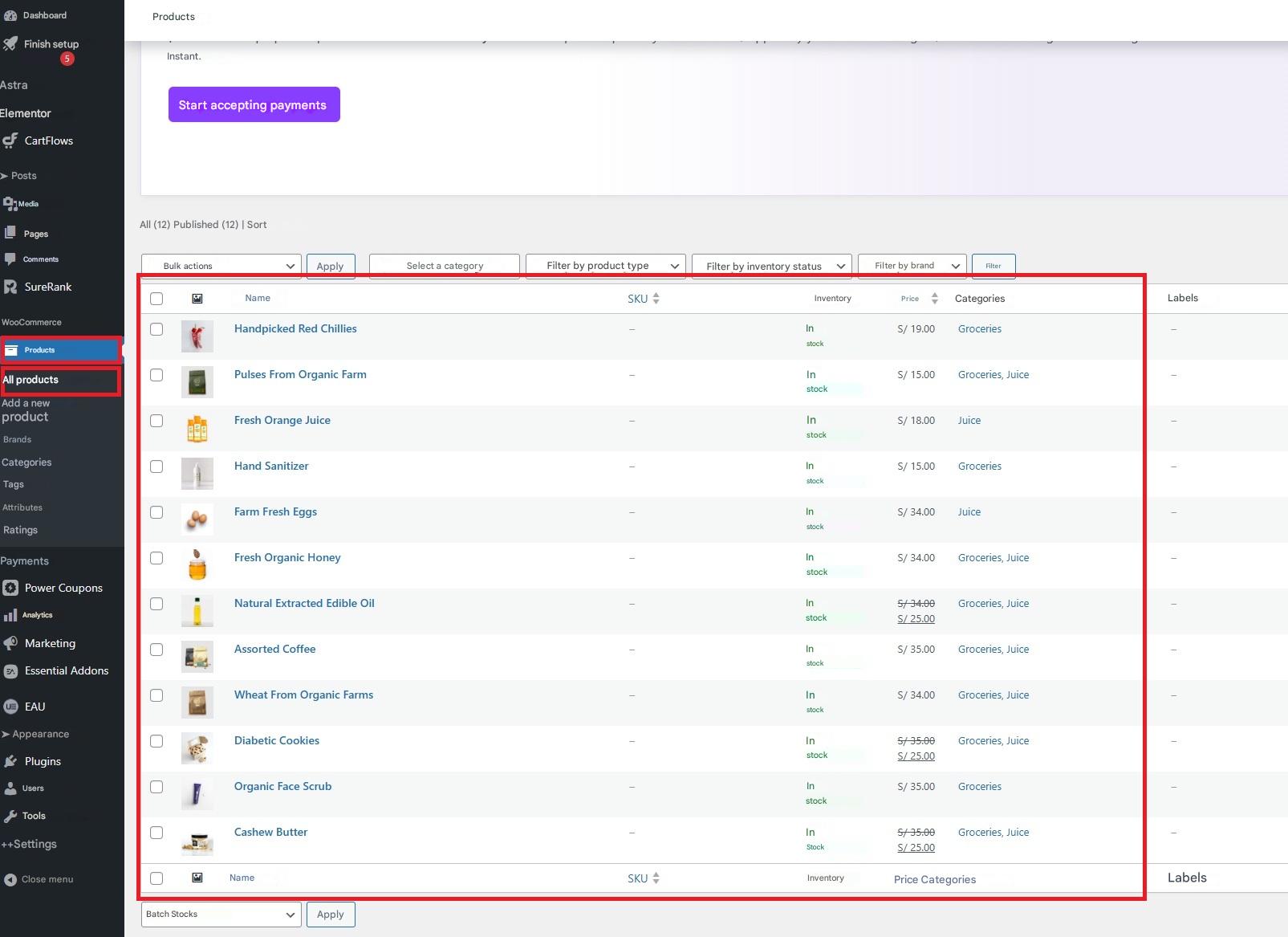 - Go to Products → All products and select the product you want to exclude the coupon from.